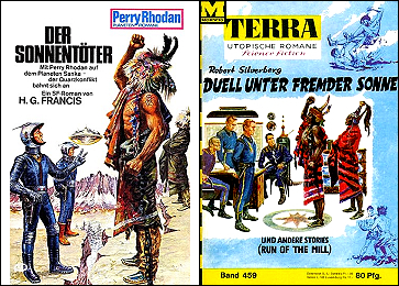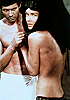 junge Frau und Außerirdischer/Mutant schauen einander in die Augen, er nimmt ihren Kopf in seine Hände, siehe auch