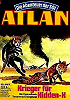 Raumfahrer mit Waffe in einer Hand und in der anderen sein Reisebündel auf der Schulter haltend dreht sich mit dem Oberkörper um |