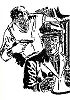 sehr ähnliches Motiv, gleiche Körperhaltung und Gesichtsausdruck, 1 und 2 sowie 4 - 6 gleiches Bild, 8 Vor- bild für Nachzeichnung |