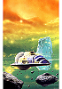 Szene an Schlagbaum, vor dem Raumboot bzw. Fahrzeug steht, im Hintergrund Gebäude mit segelartigem Aufbau |