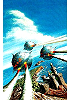 3 Kugelraumer über Landzunge mit Burg