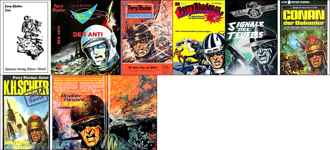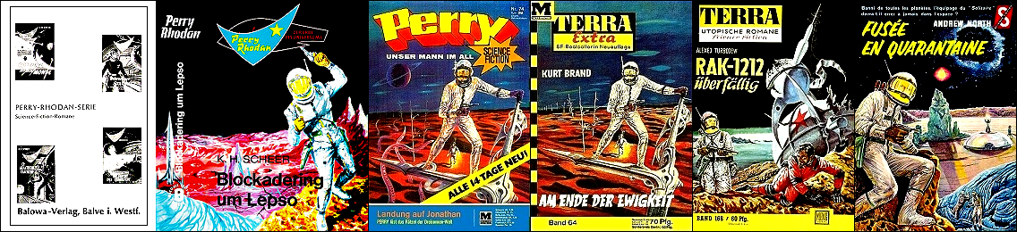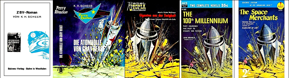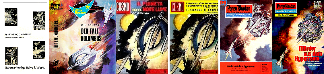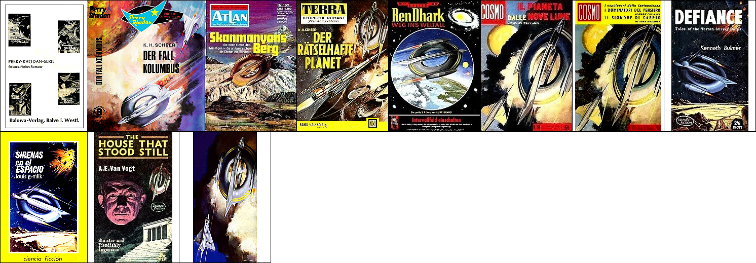 ähnliches Motiv, besonders populär wurden Ringraumer in der Ren-Dhark-Serie, 5 und 6, 7 und 8 gleiches Bild, 10 möglicherweise Vorbild für Nachzeichnungen