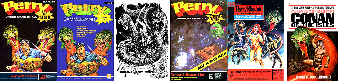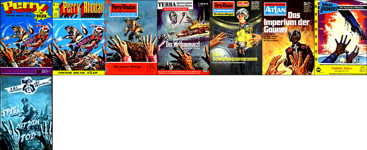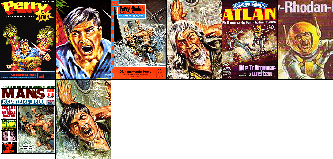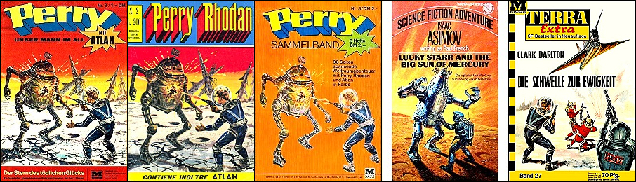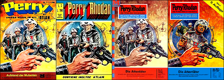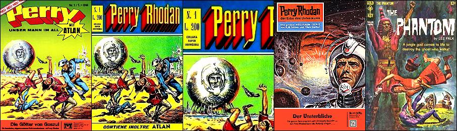 Die Mehrfachverwendungen der Titelseiten-Grafiken der Comics "Perry, unser Mann im All" Heft