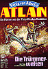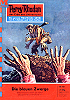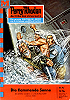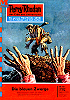 kämpfende Raumfahrer vor Kugelraumer, in dem das Gesicht von Perry Rhodan zu sehen ist |