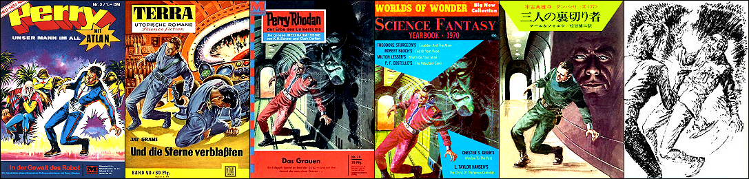 1 - 2 gleiches Bild, das Gesicht im Raumschiff ist von 4 nachgezeichnet, die zwei kämpfenden Männer links von 5 |