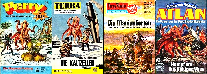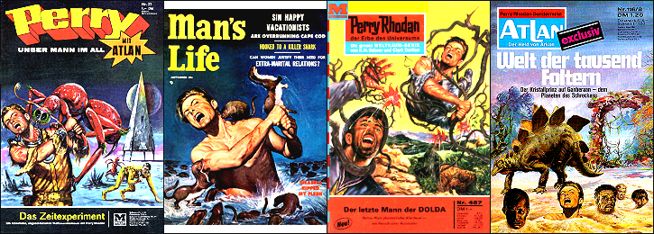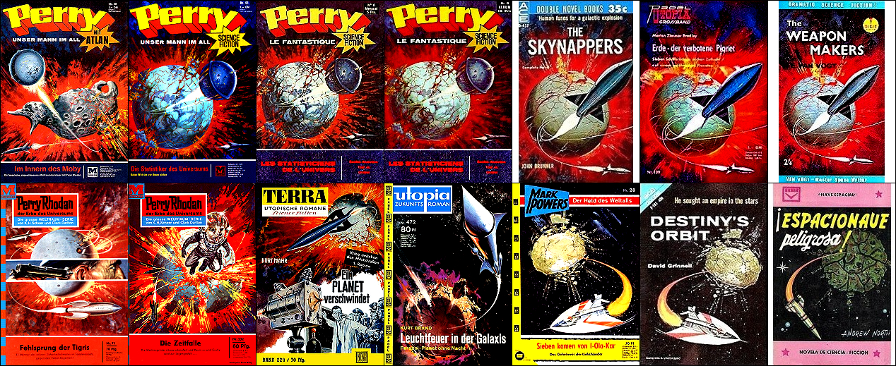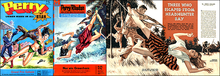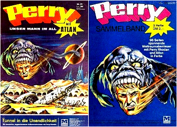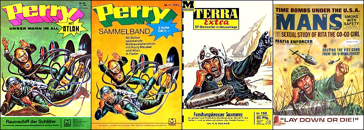 Die Mehrfachverwendungen der Titelseiten-Grafiken der Comics "Perry, unser Mann im All" Heft