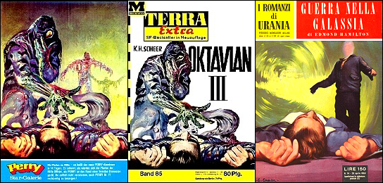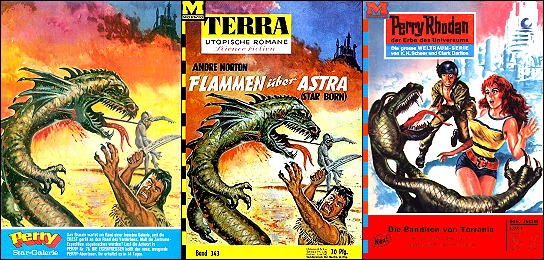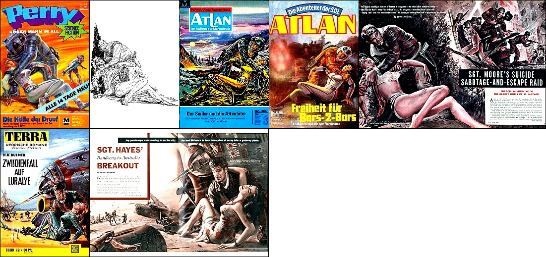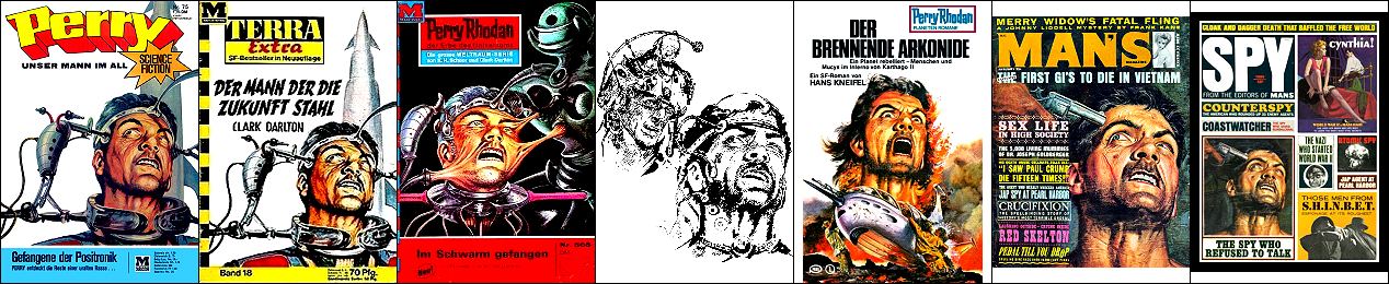 Die Mehrfachverwendungen der Titelseiten-Grafiken der Comics "Perry, unser Mann im All" Heft
