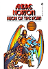weißhaariger Mann mit Schwert vor Raketenstartrampe |
