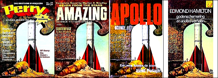 Die Mehrfachverwendungen der Titelseiten-Grafiken der Comics "Perry, unser Mann im All" Heft