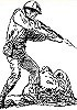 mit Gewehr nach schräg unten zielender Mann