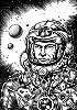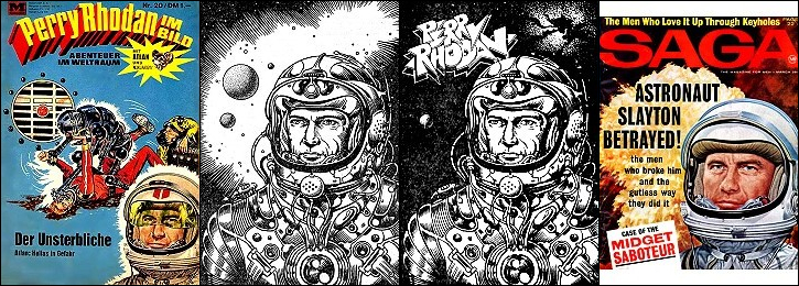 Kopf im Raumanzug ähnlich, von 7 nachgezeichnet, das Vorbild ist der Schauspieler Kirk Douglas