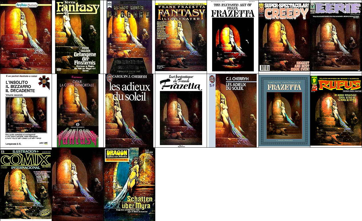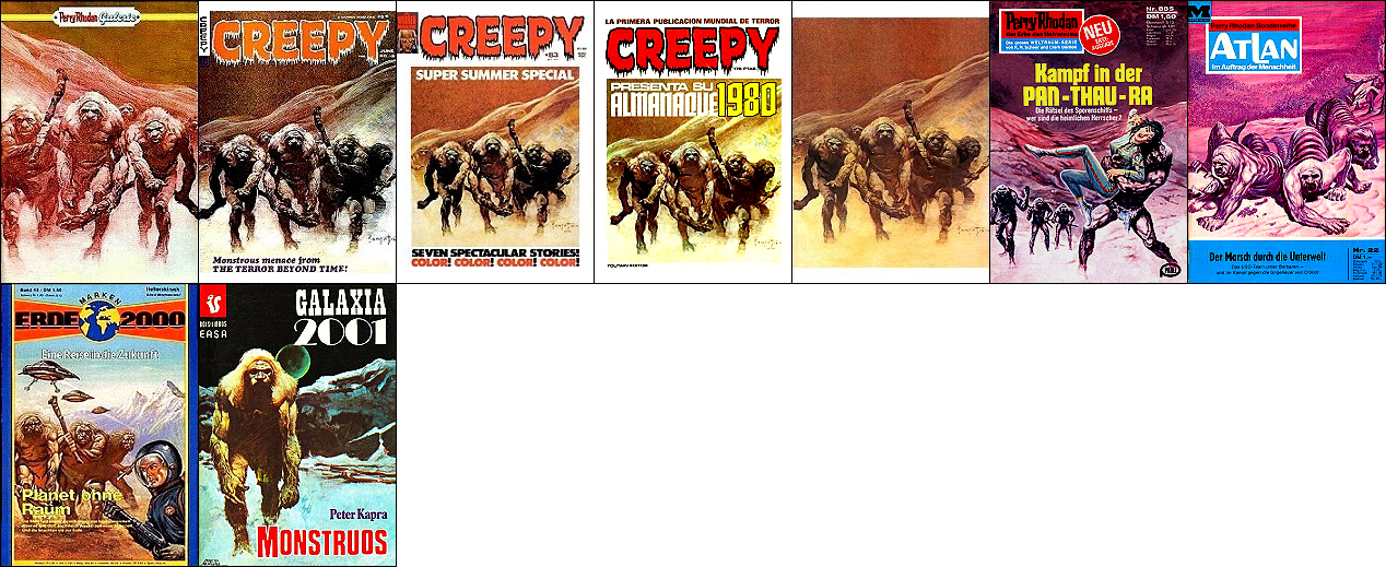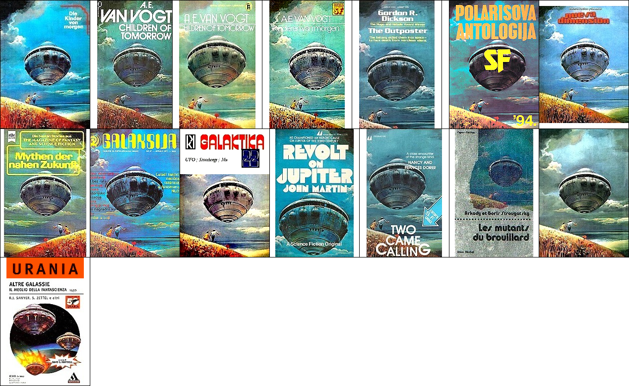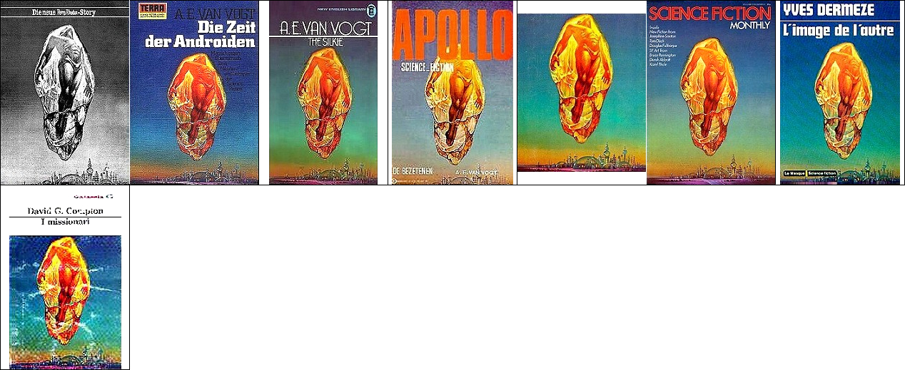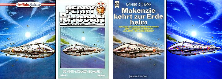 1 - 3 gleiches Bild, 4 und 5 gleiches Bild, für deutsche Ausgabe des gleichen Romans Bildausschnitt seitenverkehrt nachgezeichnet |