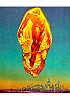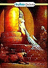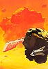 Raubvogel und Reiter vor Wüstenlandschaft mit brennender Stadt im Hintergrund |