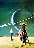 sitzender Hund vor Tadsch Mahal, am Himmel Ringplanet