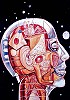 menschenförmiger Roboterkopf mit Einblick ins Innere