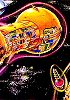 ähnliches Motiv, 1 - 3 gleiches Bild mit geändertem Hintergrund, in 4 ist das Raumboot nachgezeichnet