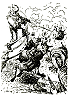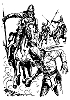 zwei flüchtende Männer hintereinander, der zweite mit ausgebreiteten Armen |
