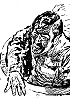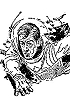 kämpfender Mann bzw. Außerirdischer streckt geballte Hand aus |