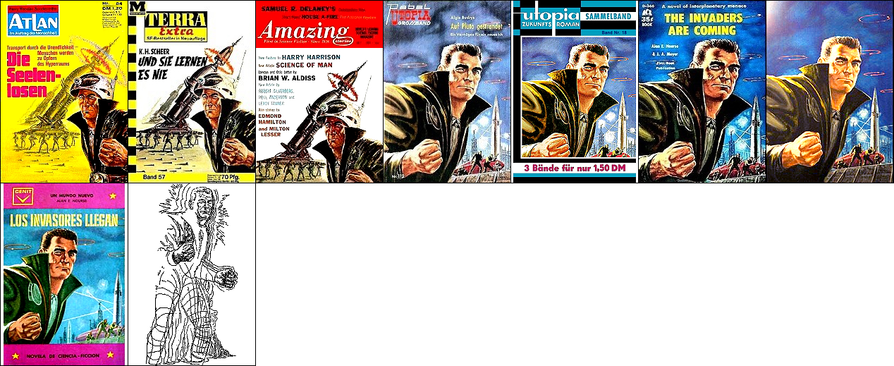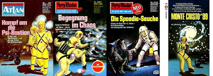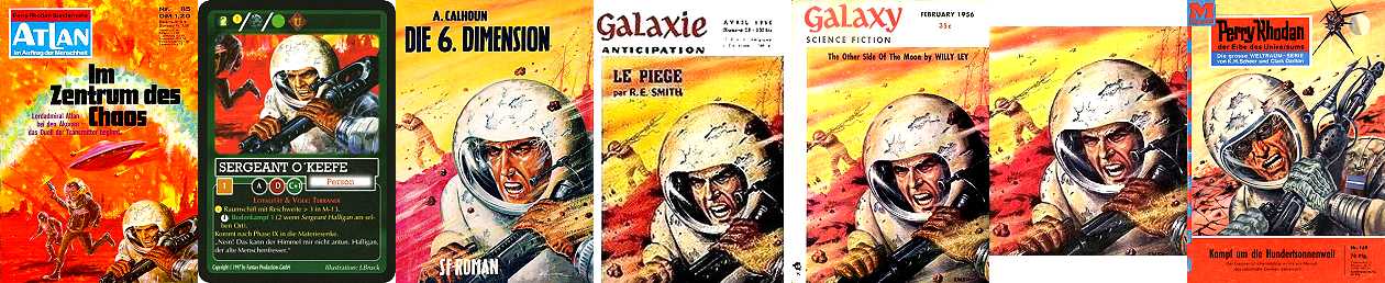 ähnliche Motive, 1 auf jeden Fall stark von 4 inspiriert (man beachte die schwarzen Kugeln neben dem Raumfahrer) |