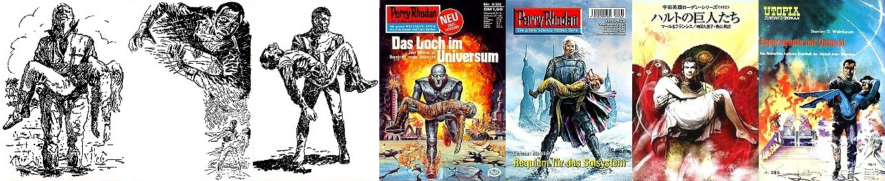 Mann/Roboter hält anderen Mann/Frau/Gucky in den Armen, siehe auch PR Nr. 877 und PR Nr. 930