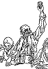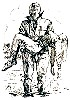 1 und 2 sehr ähnliches Motiv als Farbbild und Federzeichnung, von 3 nachgezeichnet, 4 geringere Ähnlichkeit, aber gleiche Körperhaltung