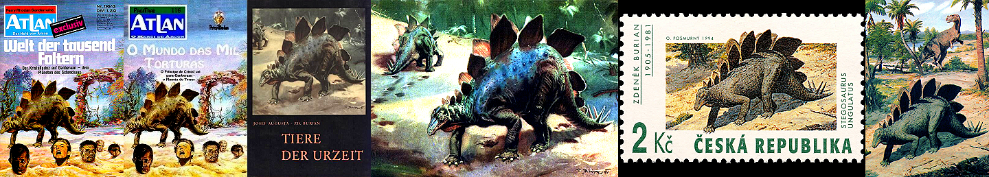 1 - 2 gleiches Bild, Stegosaurus ist von 3 übernommen, 3- 5 gleiches Bild