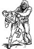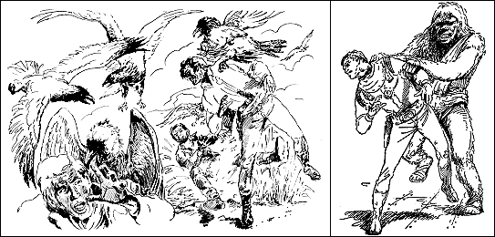 Mann wird von Raubvögeln angegriffen und dreht sich zur Seite weg