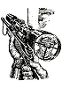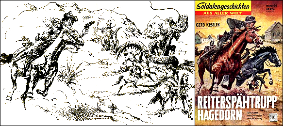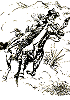 Reiter in vollem Galopp mit zur Seite gerichteter Waffe |