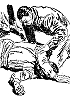 Gruppe in 1, 2, 4 und 5 von 6 nachgezeichnet, in 3 hat der kniende Mann eine ähnliche Körperhaltung |