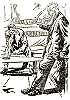 1 und 2 gleiches Motiv in Farbe und schwarzweiß, in 1 Mann durch Außerirdischen ersetzt, 3 geringere Ähnlichkeit beim sitzenden Mann, aber stehender Mann mit ähnlicher Körperhaltung wie in 1 und 2, 4 ist Vorbild für Nachzeichnungen |