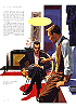 hinter Tisch sitzender Mann, der den Kopf auf die Hand gestützt hat, unterhält sich mit Maahk bzw. anderem, der an einer Kommode lehnt, sich dort mit einer Hand festhält und mit der anderen Hand gestikuliert |