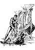 Mann bedroht mit Schwert bzw. Streitaxt liegenden anderen Mann