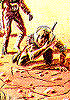 1 - 4 gleiches Bild, 6 als Inspiration benutzt, Raumjäger aber etwas anders als das Flugzeug gezeichnet, 5 fast gänzlich von 6 nachgezeichnet, aber mit Menschen und Raupenwesen ergänzt