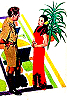 der linke Raumfahrer und die Frau, die zum Ringplaneten deutet, sind von 2 nachgezeichnet