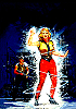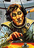 Mann mit schief gehaltenem Kopf, gebleckten Zähnen und verzerrtem Gesicht greift nach vorn, man beachte auch den vom Mittelfinger etwas abgespreizten Zeigefinger