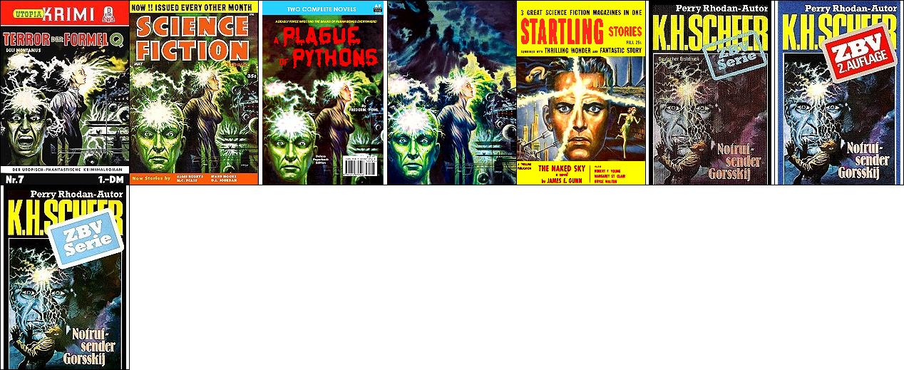 Die Mehrfachverwendungen der Titelseiten-Grafiken der Utopia Kriminalromane 1 - 9