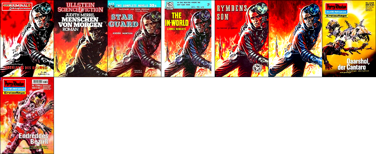 1 - 5 gleiches Bild, in 7 Raumfahrer eingebaut, in 8 Raumfahrer anders dargestellt, aber Hintergrund fast identisch nachgezeichnet