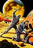 Raumfahrer neben Raumboot wird von hinten von vermummtem Angreifer angegriffen