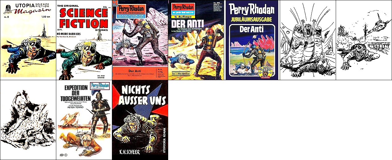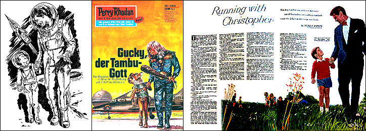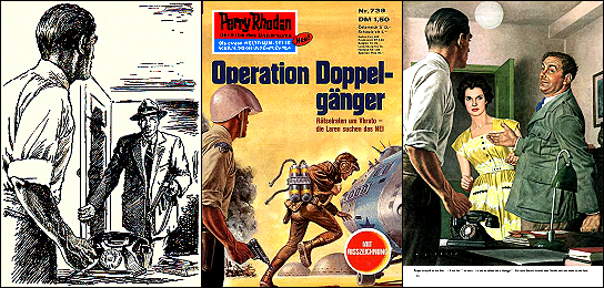gleiche Körperhaltung, von 3 nachgezeichnet, in 2 sind Gucky und Lord Zwiebus aus den beiden Personen geworden |