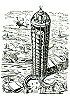 Wolkenkratzer mit Raketen im obersten Geschoß |