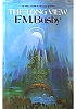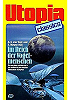 Boot am Rand von Eisschollen neben pilzförmigem Gebäude und Planeten am Himmel