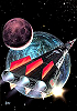 Keilraumschiff mit 3 Flossen am oberen hinteren Ende
