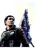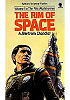 Raumfahrer schaut zur Seite, im Hintergrund Raketenraumschiff |