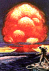 der Mann samt Leuchtkugel ist vom Zauberer in 2 inspiriert und kommt mit ähnlicher Körperhaltung auch in 3 vor, der Supermutant in 4 im Transportroboter hat die gleiche Armhaltung wie in 1 bis 3 und beschwört gleichermaßen die Leuchtkugel bzw. Sonne |