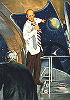 Mann wird von anderem mit Leuchtkugel geblendet |