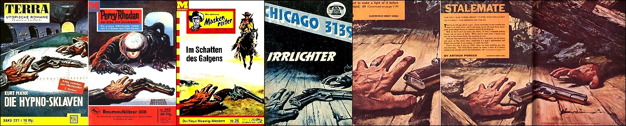sehr ähnliches Motiv, Hand mit Pistole fast gleich, Rest unterschiedlich, 5 Vorbild für Nachzeichnung |