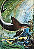 sehr ähnliche Körperhaltung, Mann inklusive Messer von 5 nachgezeichnet, restliches Bild unerschiedlich, der Hai ist seitenverkehrt von 6 nachgezeichnet |
