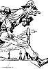 der Mann schreitet auch in 2 - 4 dahin und ist von 5 nachgezeichnet