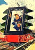 Der Mann ist von 2 übernommen, der darin auf die Basiliuskathedrale in Moskau zugehende Mann aus 2 wurde durch einen Raumfahrer ersetzt, der auf startbereite Raketen zugeht, die Köpfe von 4, die auch als Vorlage für 3 Verwendung fanden
