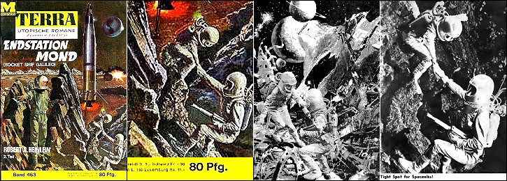 die beiden Raumfahrer rechts unten kommen leicht verändert auch in 3 vor und sind aus 4 übernommen, das eine Szene aus dem japanischen Film "Krieg im Weltenraum" zeigt